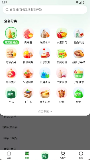 1、引导分类列表的交互体验已优化,现在能更便捷地浏览新鲜蔬果、品质肉禽、鲜活水产等各类优质商品。