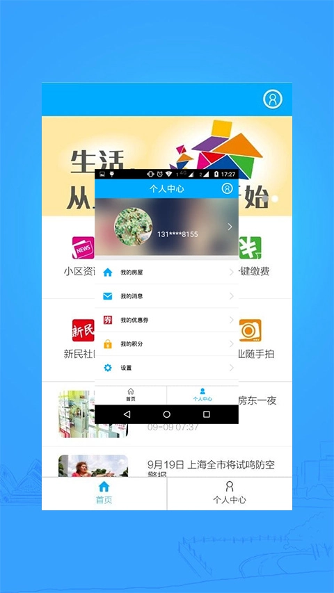 1、打开上海智慧物业最新版首页,点击下方个人中心