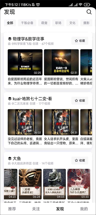 2、在发现界面,我们能看到这里展示的全是系列视频。大家可以根据自身需求来查找内容,既可以通过界面上方的分类特点进行筛选,也能直接使用右上方的搜索栏来精准搜索。