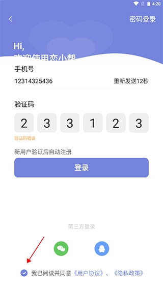 3、填写好相关信息并勾选同意用户协议,就能完成注册登录操作了。