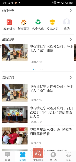 掌上金普是一款专注于新闻阅读的移动应用,平台提供了更为全面的服务内容,能充分满足用户的信息需求,让大家随时获取各类资讯服务。此外,它还具备文明实践、阳光物价、校餐食谱、电视直播等功能,支持在线办理和查询相关业务,功能丰富多样,覆盖范围广泛。本地实时新闻板块为您呈现最新资讯,助您及时掌握金普本地动态;便民服务涵盖公交、预约挂号、生活缴费等,打造一站式生活服务平台。