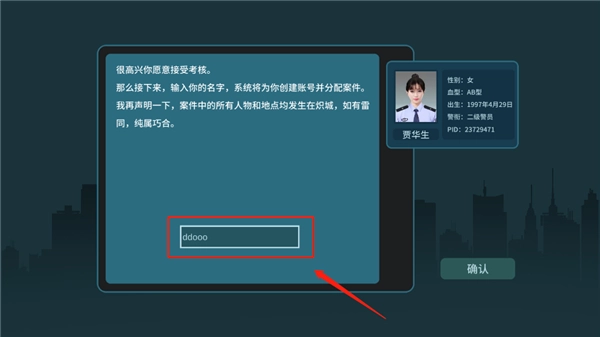 4、接下来就是输入你的名字了,系统将会为玩家创建账号并分配案件。