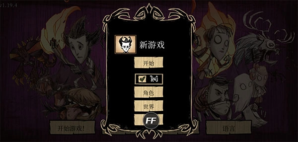 1、首先进入游戏,选择角色后设置世界,新手建议从秋天开始设置长白天,建议角色就用科学家,地图默认,第二个选项最多,第三个选项从不,三宝箱开局!坟地与复活地,猪人设置为最多,其他全默认,因为设置过多更多会导致游戏卡顿,特别是齿轮怪,设置更多就等卡死!