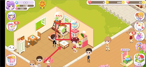 6、地图中有各种场景都有不同的玩法,例如服装店可以购买各种好看的服装、家具店中可以为小店购买各种装饰品、农场可以种植制作蛋糕的材料等等,还有很多场景会随着你的等级慢慢开放