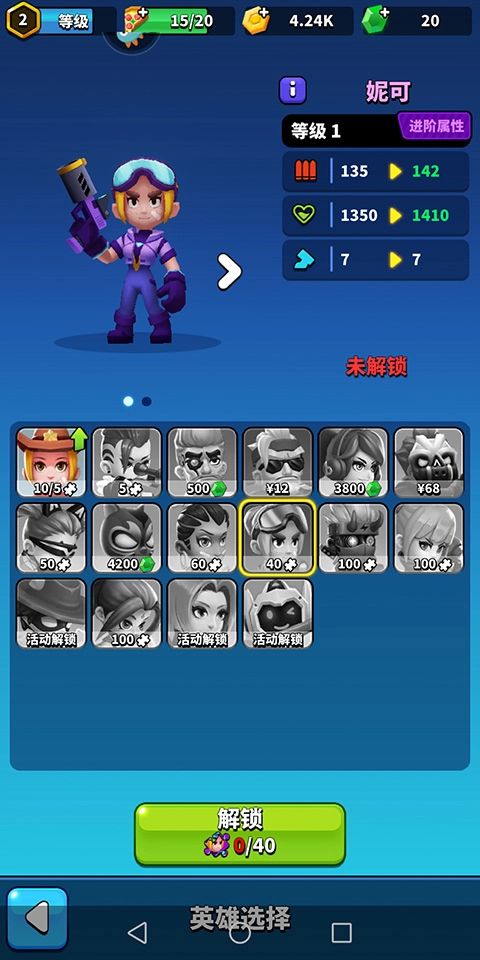 多达近二十个英雄角色,玩家进入英雄模式中便可逐步启用,让自己的技能飞升