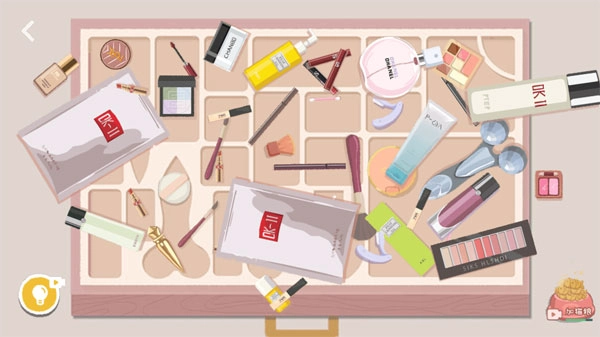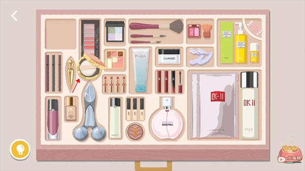 1、同样还是选择“首席收纳”中的第一关神仙姐姐,你需要将化妆盒中的东西放到指定的位置,完成收纳操作。