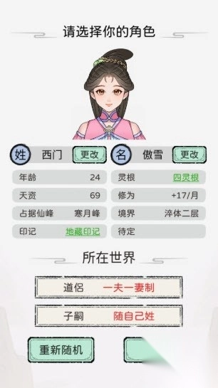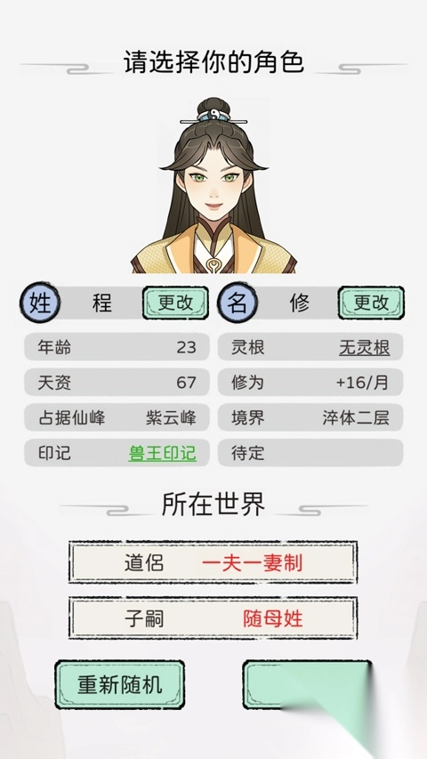 1. 当玩家首次踏入游戏,需先自定义一个角色,继而开启自身的修仙之旅。