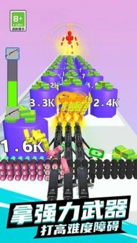 《暴击小能手》是一款融合射击与跑酷玩法的手机游戏。在游戏里,玩家将化身为勇敢的跑酷者,手握各类威力强劲的枪械,在布满挑战的赛道上飞速前行。游戏的关卡设计丰富多元,每一关都有不同的敌人与障碍等着玩家去战胜。玩家需要持续升级自己的武器,提升射击的精准度和跑酷的速度,从而更出色地应对前方的挑战。