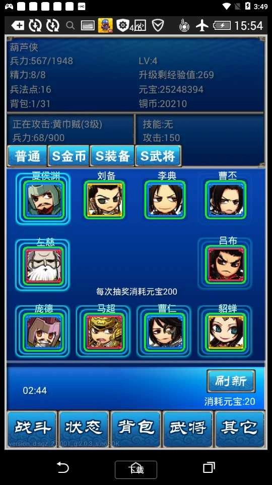 【特色一:挂机即赠】 这是一款挂机类型的三国卡牌网络游戏,只需挂机就能获得橙将、经验、银币等丰厚奖励。