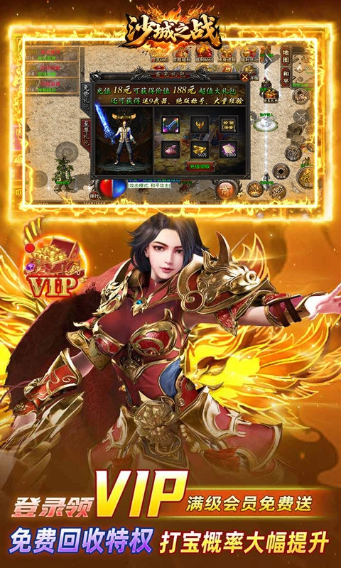 除此之外,沙城之战为了降低玩家的上手门槛,特意强化了游戏内的放置功能,同时配备了丰富多样的养成装备系统:特戒、神装、神器、宝物、战纹、战灵等诸多内容等待玩家解锁,助力战力持续飙升,炫酷装备搭配全屏绝技,让你和兄弟们尽情释放激情,在战场上纵横驰骋。热爱传奇类游戏的玩家绝对不容错过,赶紧来体验一番吧!