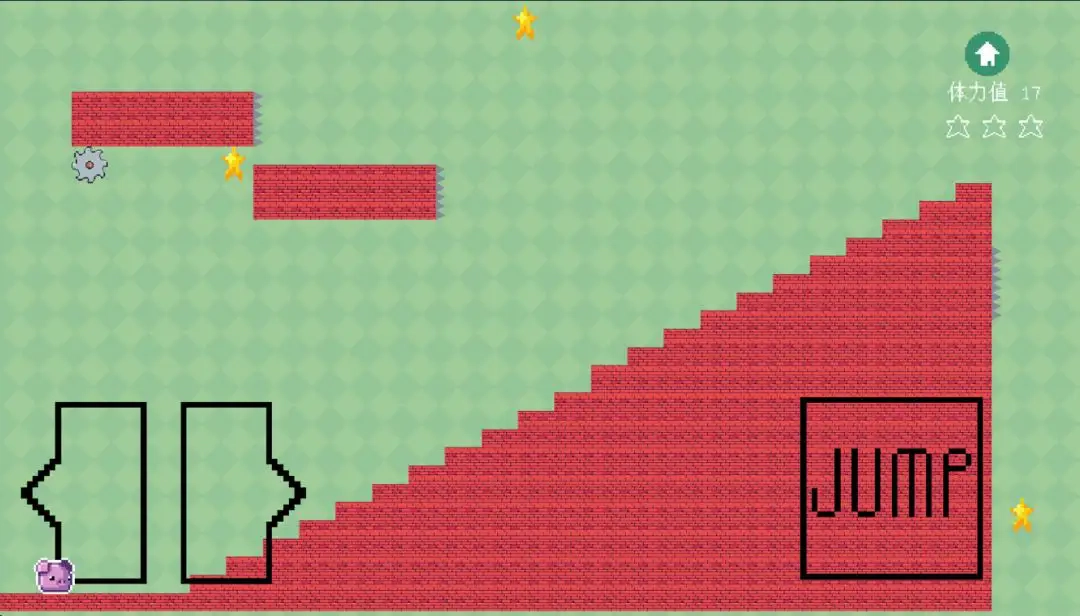 1、采用像素复古风格设计,操控你的小猪移动并收集小星星
