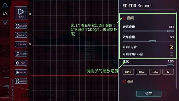 玩家能够借助游戏里功能强大的编辑器来创作属于自己的谱面。