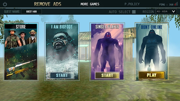 3、现在,您必须通过玩这个大脚怪狩猎多人游戏。