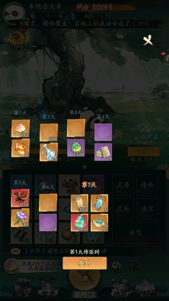 游戏内提供了海量的装备类型,不同装备拥有着不一样的等级和品质,属性也不一样,可以通过升级神树来提高高品质的装备得到率,能够提升角色属性和妖力的装备留下,其余的可以进行分解来获得一定数量的灵石。达到一定的等级,完成一定数量的任务可以进行冒险和战斗等玩法,不断的修仙升级。
