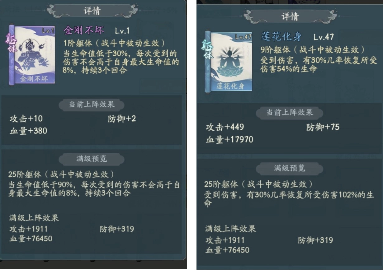 躯体方面,推荐选择金刚不坏或者莲花化身,这两个技能侧重保命效果;要是想叠加伤害的话,那就选大邪魔。