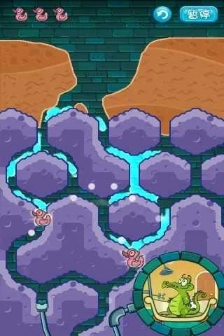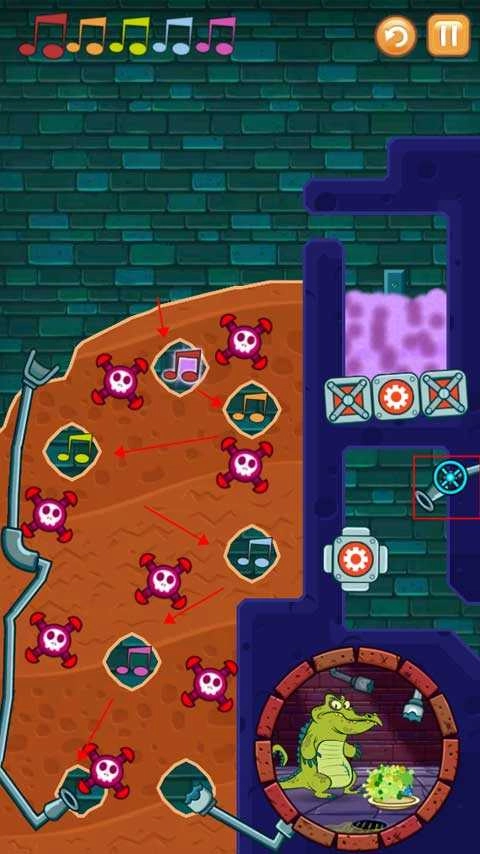 2、第一关是按照正确的顺序将水引入所有音符中,同时还要保证小鳄鱼有水洗澡。