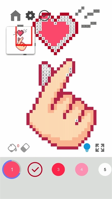 游戏画面采用像素风格呈现,每个像素都配有对应的颜色标识与数字提示。同时,游戏内还提供了颜料桶之类的便捷工具,能够实现一键为多个区域涂色的功能。
