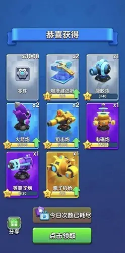 有时间就看看广告获取点砖石开500的单加快炮塔卡片获取,没时间就下一些科技固定关卡挂机刷金币。