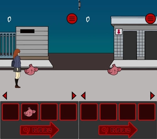 妹子先前进,然后猪头丢到妹子身后让痴汉吃了。再在鸟前面放石头,妹子经过会被石头绊倒,鸟飞起来,妹子顺利回家。